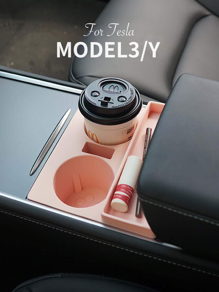 "Meow" Silicon Cup Holder Mat For Tesla Model Y - Gray - Pink